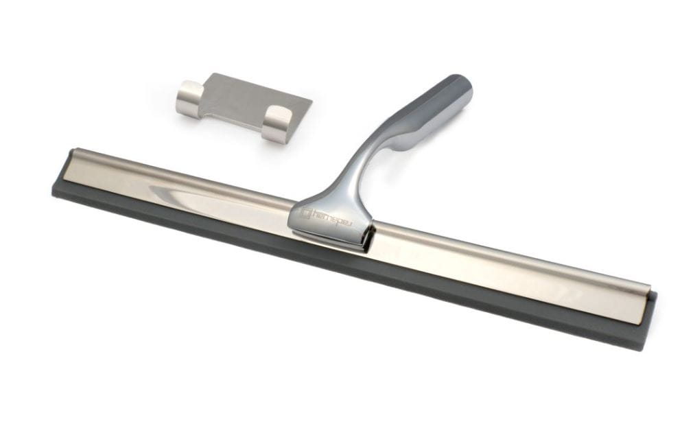 Uniwersalna ściągaczka łazienkowa wykonana ze stali nierdzewnej z praktycznym wieszakiem. Przeznaczona do usuwania wody i pary z kabin prysznicowych, płytek i luster. Szerokość ściągaczki 25 cm. W zestawie z uchwytem.
